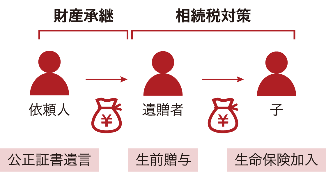 生前贈与、不動産・生命保険の活用等を通じて、将来発生するであろう相続税の節税案をご提案いたします。